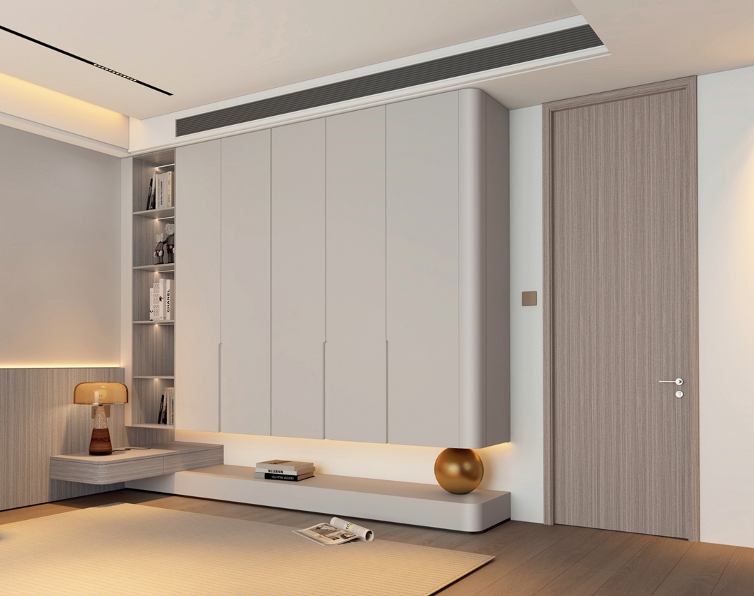 產品型號:現代衣柜書架一體柜-銀絲木2號